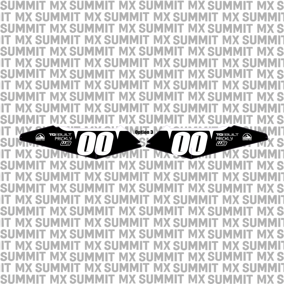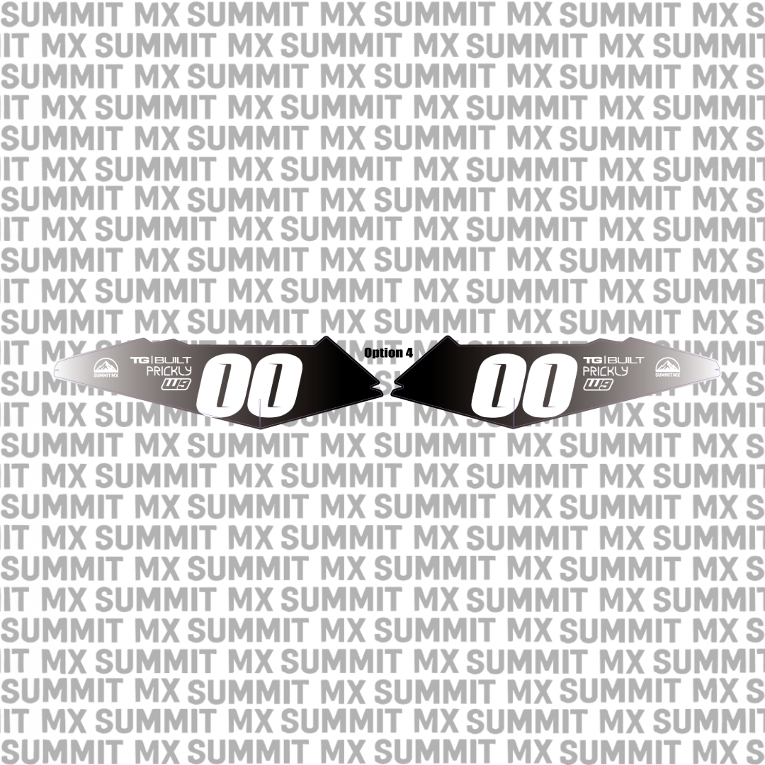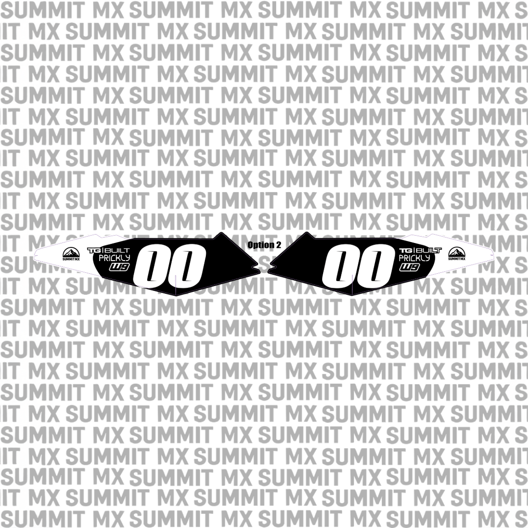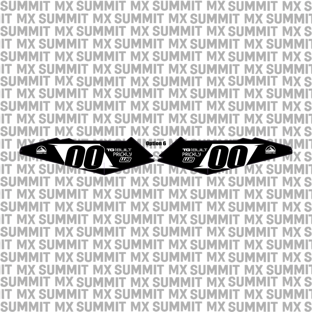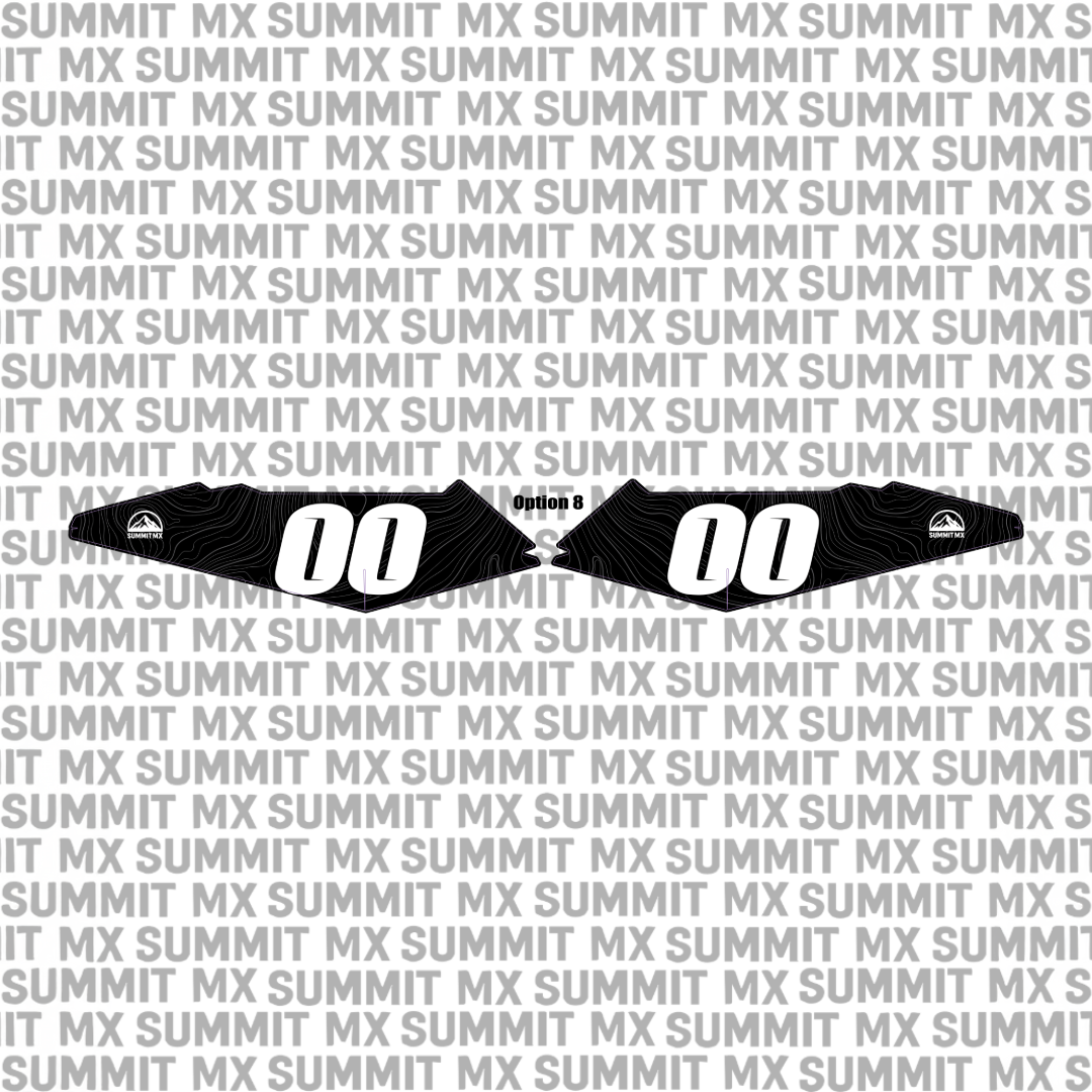 Choose from our pre-designed decal options with carefully selected logos and placements. Customize your kit by choosing your number, selecting from four different number fonts, and picking any of our available vinyl and laminate options.